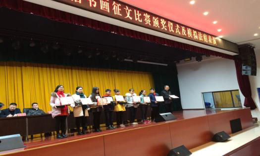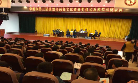 11月30日,华蓥市“第三届法治书画、征文比赛”活动的颁奖仪式及模拟法庭表演在华蓥二中隆重举行并取得圆满成功。市政法委书记黄运江出席颁奖仪式并发表讲话。市委政法委、市关工委、市司法局、市教科体局等单位领导出席活动并颁奖。活动主要内容包括颁奖仪式、模拟法庭表演,历年获奖书画作品展示,市书协3名书法名家、部分获奖代表现场创作展示。出席观众踊跃参与,主动学习请教,为作品展示现场营造出了浓厚的法治氛围,为1000余名观众送上了一顿丰盛的法治文化大餐。