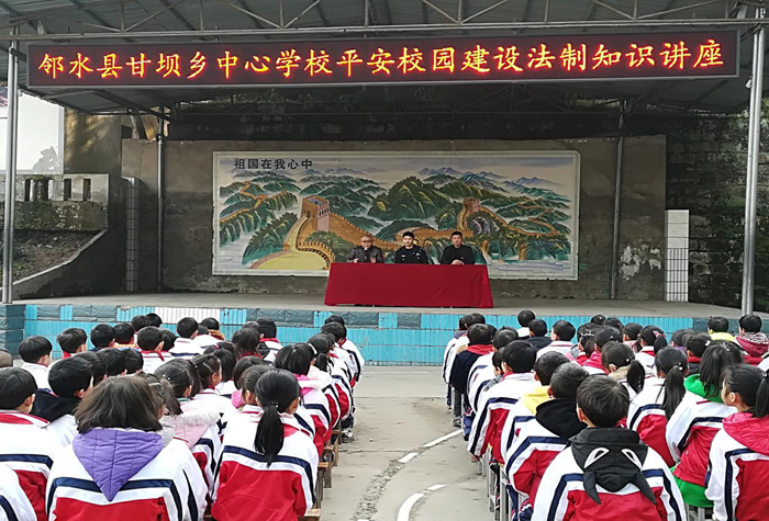 为进一步提高学生的法律意识和自我防范能力,教育广大学生在日常生活中“尊法、学法、守法、用法”,1月11日上午,邻水县甘坝乡中心学校邀请牟家派出所民警为在校学生上了一堂法治课。